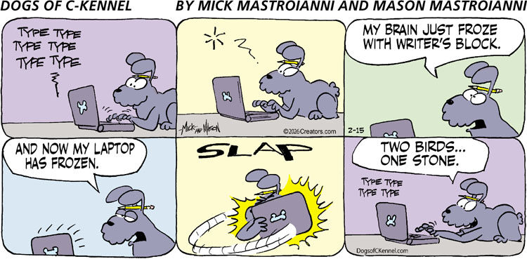 Dogs of C-Kennel, created by Mick Mastroianni, was featured as a comic strip in development in February 2007. Syndicated in 2010, the Dogs are now produced by Mick and his brother, Mason Mastroianni, B.C. cartoonist and Wizard of Id Illustrator.