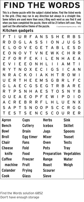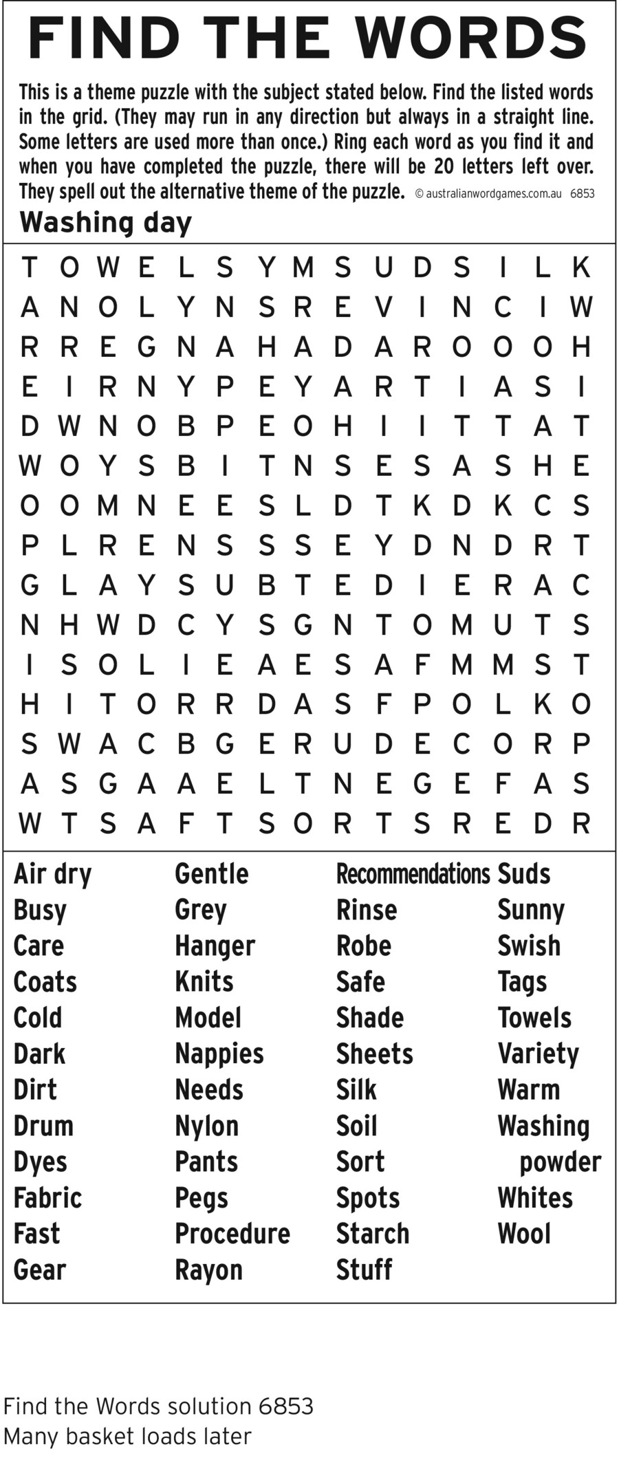 A daily wordfind with a new subject for each puzzle. Circle each word as you find it listed in the grid. Words may run in any direction, but will always be in a straight line. Keep in mind that one letter may be use multiple times.