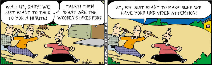 This comic centers around Gary the vampire and his demonic sidekick Leopold as they try to adjust to life in the suburbs. Follow Gary, Leopold, and Travis, the severed head in a jar in, Scary Gary by Mark Buford.